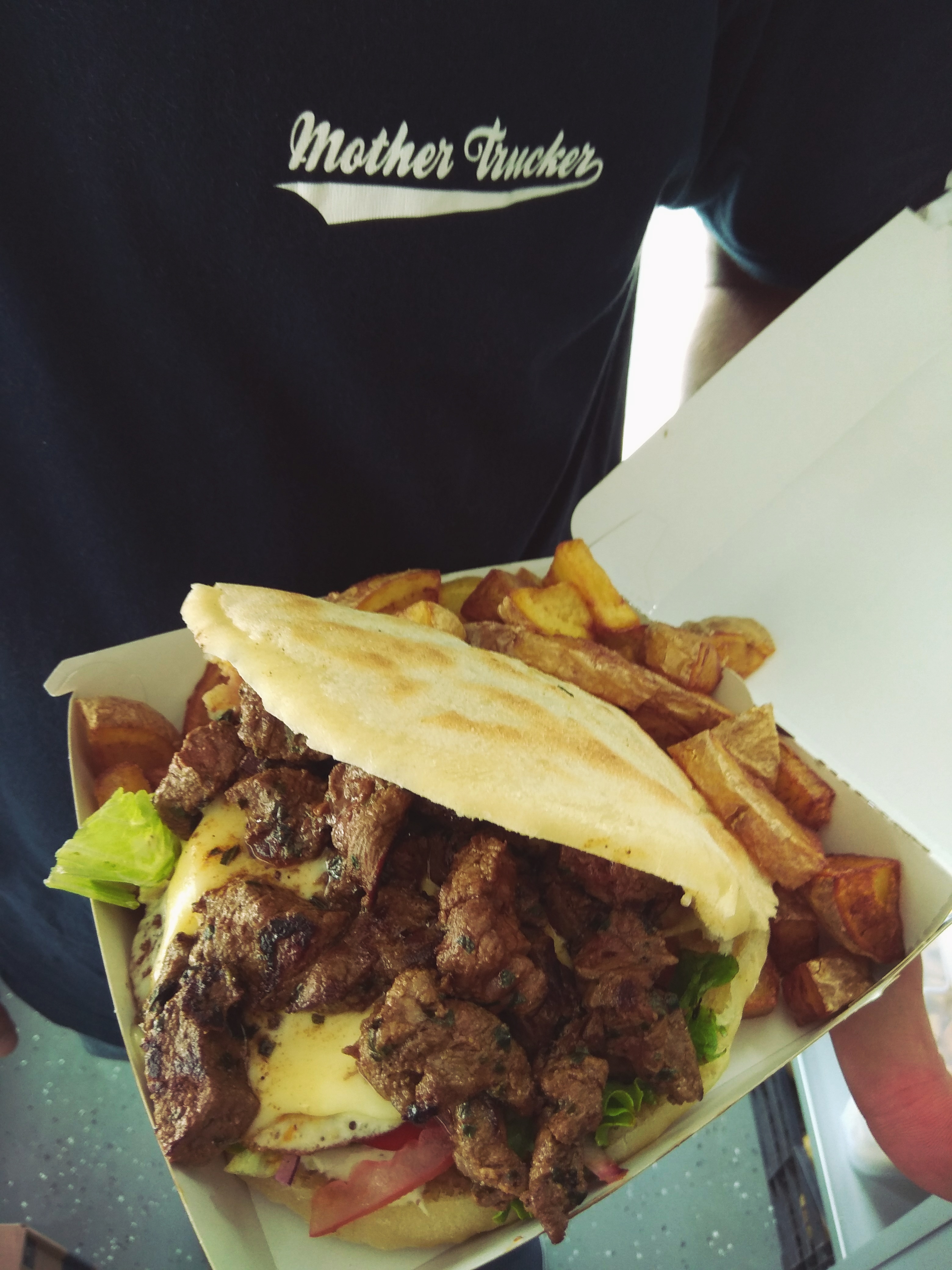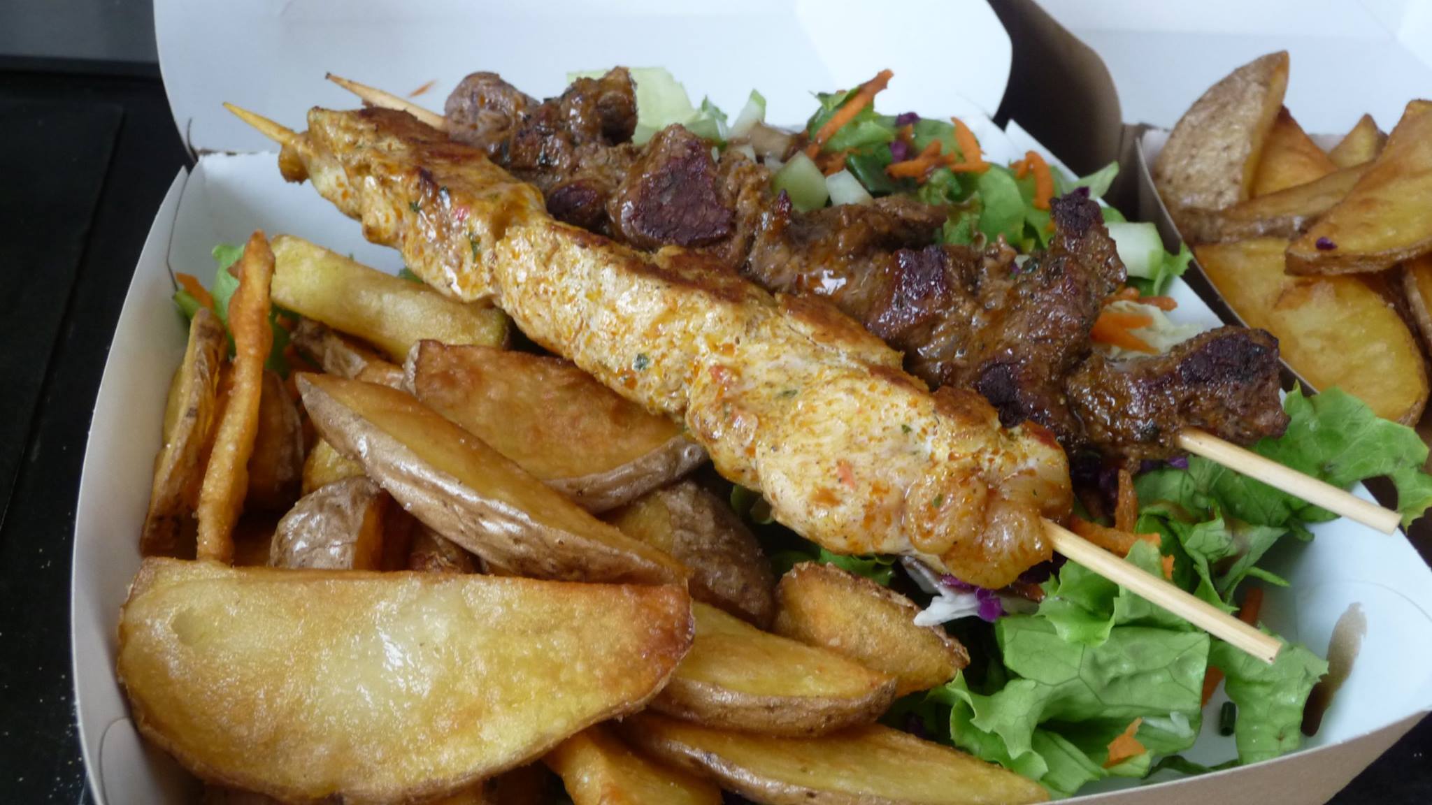 Des frites coupées à la main, une salade de crudités accompagnées de brochettes ou de bricks, c’est la Mother Trucker Box