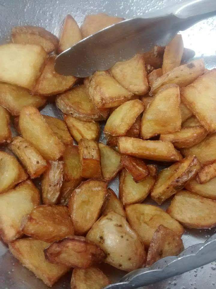 Garniture : salade, Oignons Rouges, Tomates, Galette de Pomme de terre, Mozzarella.